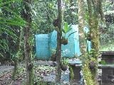 I had left the ponchos in the bus because it was only a light drizzle as we entered the museum. After we were already pretty far along on the outside walk it started to rain a lot heavier so we got wet. Anna pointed out the transfer system used by the banana plantation to move the produce. We also saw some monkeys along the way.