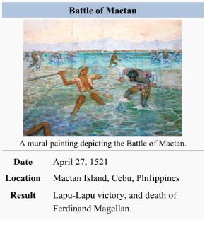 The Battle of Mactan was fought in the Philippines on April 27, 1521. Background